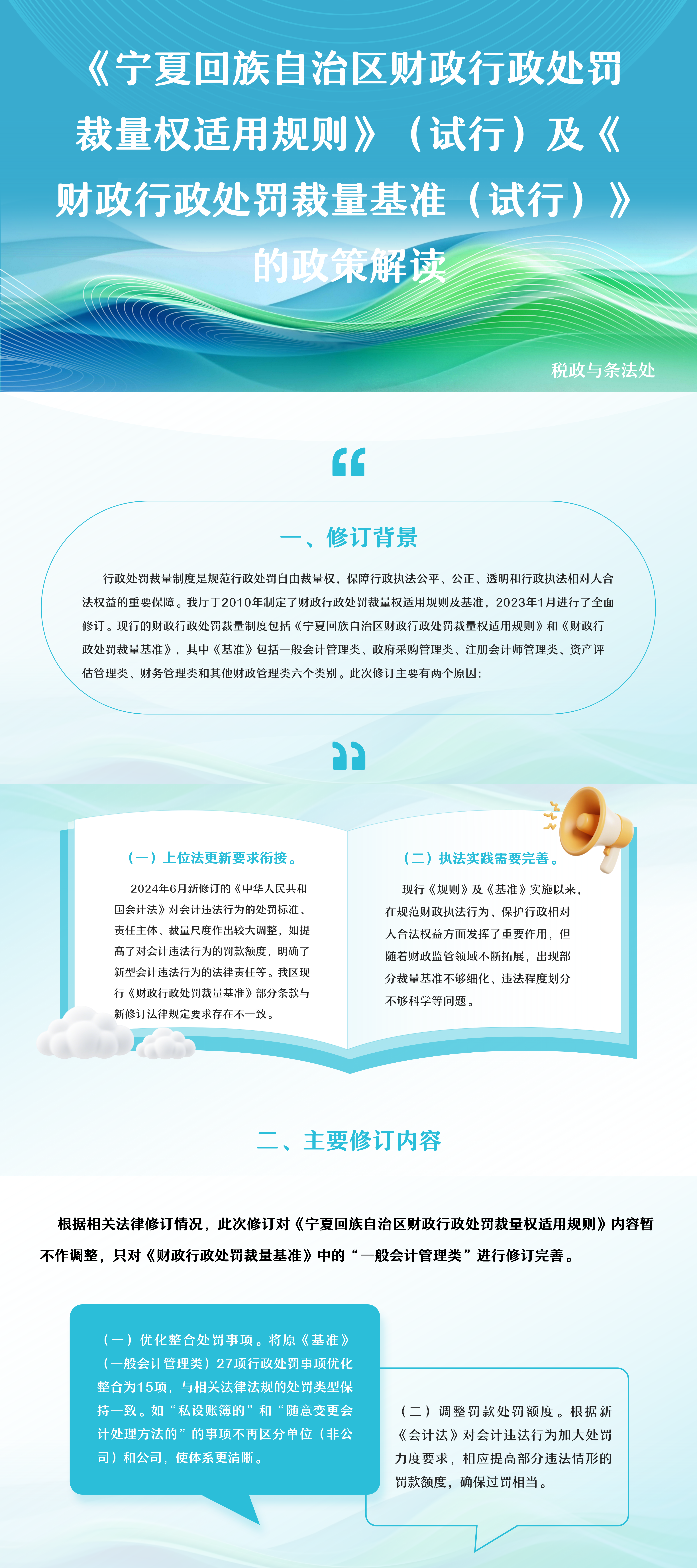 相关文件:自治区财政厅关于印发《宁夏回族自治区财政行政处罚自由裁量权适用规则(试行)》和《财政行政处罚裁量基准(试行)》的通知
