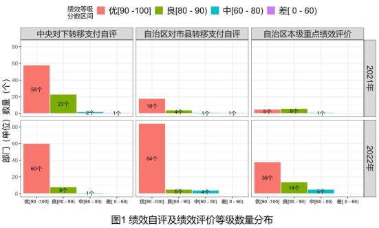 (一)更加精准明确地“评”。自治区财政厅组织从单位自评、部门重点评价、财政重点评价、转移支付评价四个方面相结合,建立了财政支出绩效评价分级管理机制。一是自治区本级部门(单位)绩效自评达到全覆盖。二是部门重点评价。在单位自评全覆盖的基础上,组织各部门选取本部门重点项目开展第三方绩效评价,2022年度共计57个重点项目绩效评价,涉及资金182.8亿元。以问题为导向,以绩效评价为手段,不断提升部门预算管理水平。三是财政重点评价。在单位自评和部门重点评价的基础上,自治区财政厅牵头组织开展了6个重大支出政策和重点项目第三方绩效评价,涉及资金33.8亿元,重点关注中央和自治区重大支出政策和民生项目的落实,以“财”铺“政”的质量和水平进一步提升。四是组织部门和市县对中央对下转移支付和自治区对市县专项转移支付全覆盖绩效自评,涵盖一般公共预算、政府性基金预算、国有资本经营预算共计459.3亿元,确保中央和自治区相关政策落实。