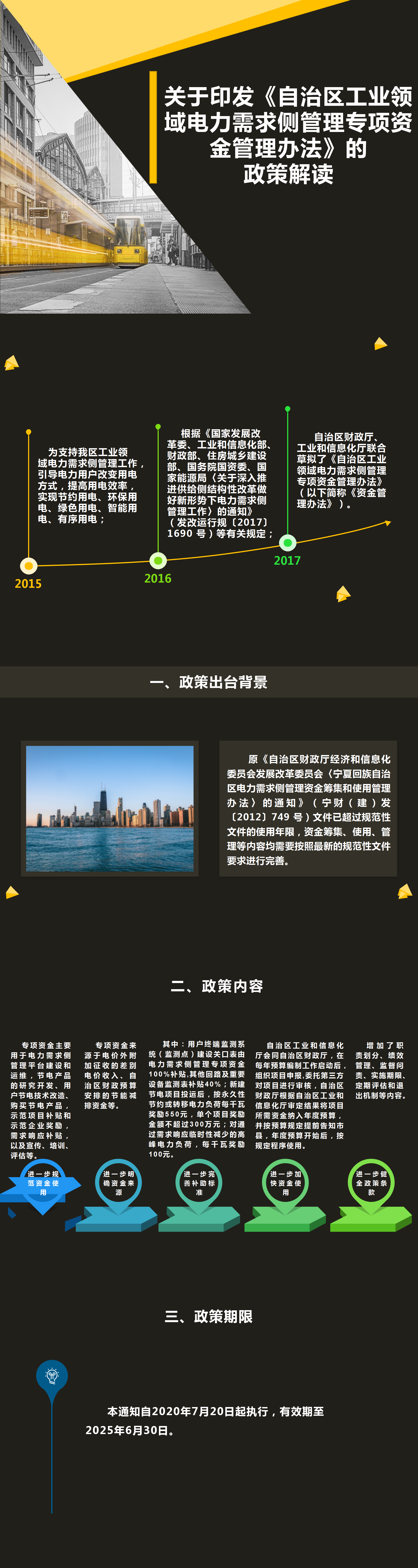 为支持我区工业领域电力需求侧管理工作,引导电力用户改变用电方式,提高用电效率,实现节约用电、环保用电、绿色用电、智能用电、有序用电,根据《国家发展改革委、工业和信息化部、财政部、住房城乡建设部、国务院国资委、国家能源局〈关于深入推进供给侧结构性改革做好新形势下电力需求侧管理工作〉的通知》(发改运行规〔2017〕1690 号)等有关规定,自治区财政厅、工业和信息化厅联合草拟了《自治区工业领域电力需求侧管理专项资金管理办法》(以下简称《资金管理办法》)。